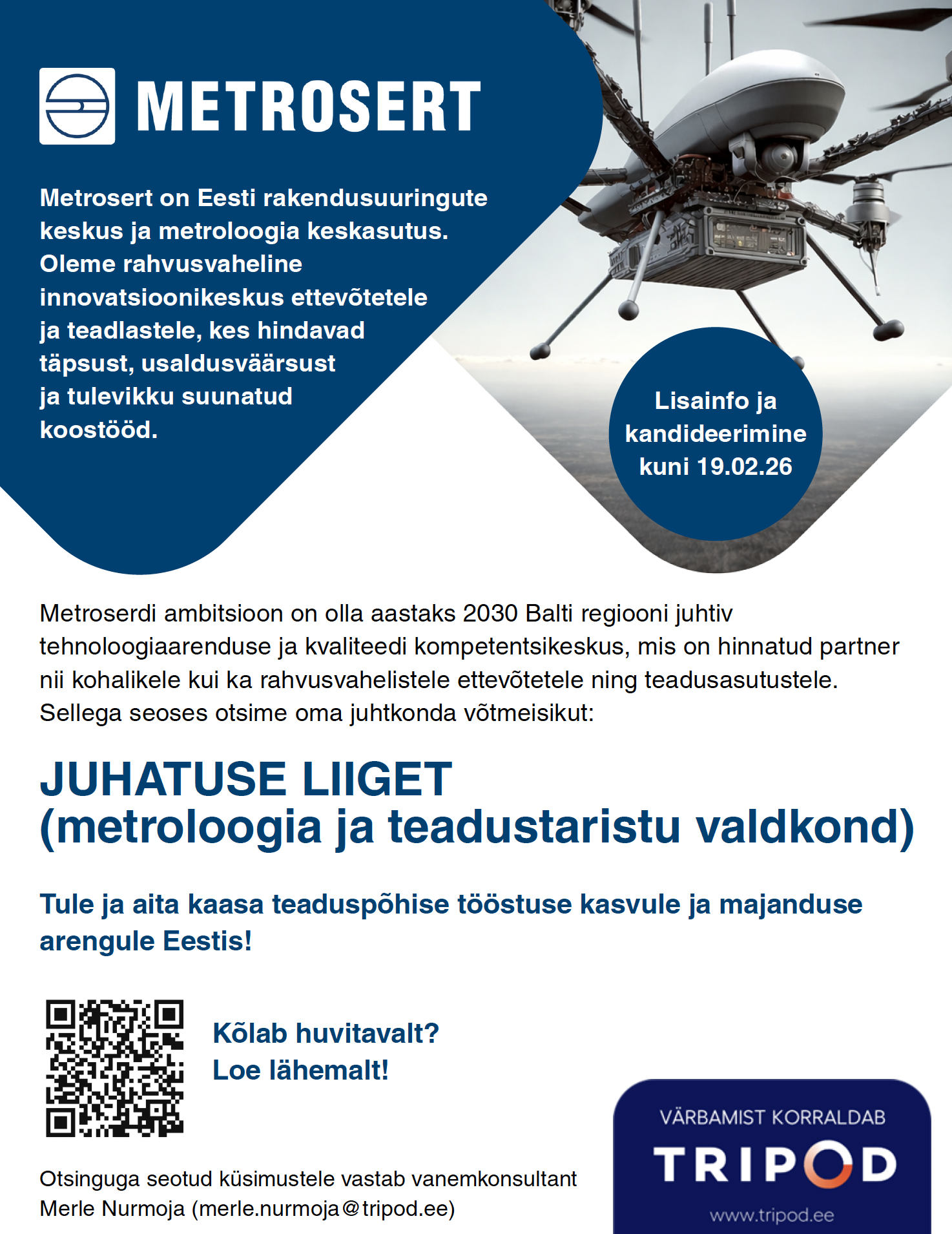 Juhatuse liiget metroloogia ja teadustaristu valdkonnas, kelle vastutus on riikliku metroloogia ning Metroserdi teadustaristu hoidmine, arendamine ja tulevikukindluse tagamine. Sa kujundad valdkonna strateegilist suunda, tagades, et riigietalonid, teadustaristu ja nendega seotud tegevused vastavad nii rahvusvahelistele nõuetele kui ka Eesti pikaajalistele vajadustele.